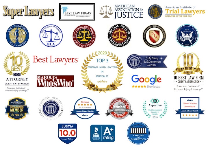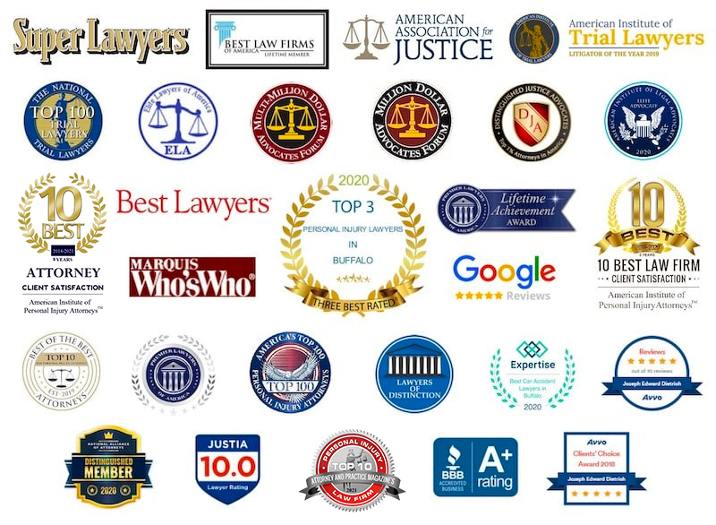 - American Institute of Personal Injury Attorneys 10 Best Attorneys: The American Institute of Personal Injury Attorneys recognizes the 10 Best Attorneys in New York for client satisfaction in the practice area of personal injury law. Membership is limited to those attorneys who demonstrate excellence in their practice of personal injury law, with the satisfaction of their clients being of the utmost importance. Jed Dietrich, Esq. has been recognized by 10 Best Attorneys in Western New York in 2019, 2020, 2021, and 2022.